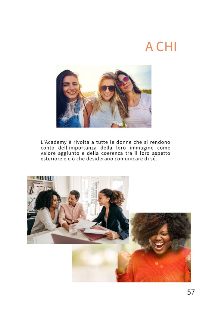 L’Accademia ha come obiettivo la valorizzazione dell’immagine femminile in ambito personale e professionale per favorire una maggiore consapevolezza di sé.